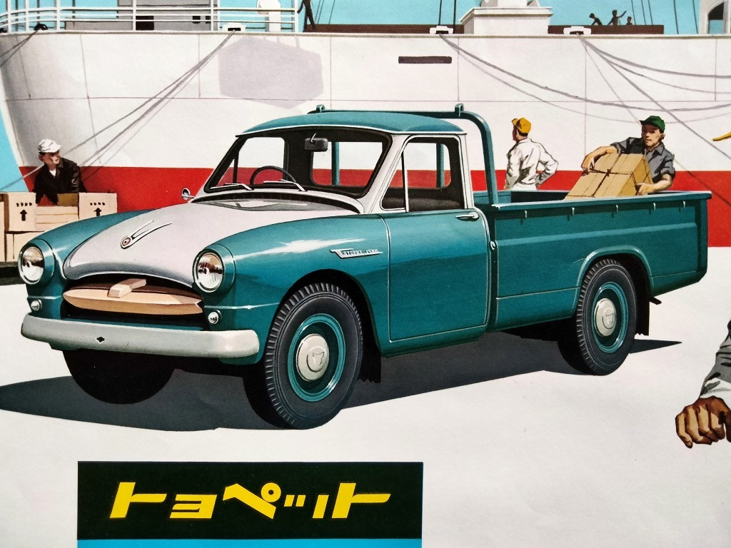> トヨペット トラック きれいなイラスト画 1950年代 当時物カタログ !! ☆ TOYOPET TRUCK RK35 標準 ピックアップ ライトバン 旧車カタログ