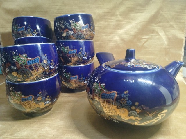 - 有田焼 瑠璃御所車八客茶器
