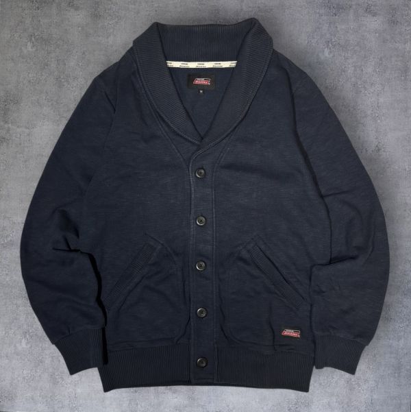 - ★Dickies★コットンジャケットsizeM ネイビー系 へちま襟 厚地カーディガン ピスネーム ディッキーズ 古着 クリーニング プレス済み 1926