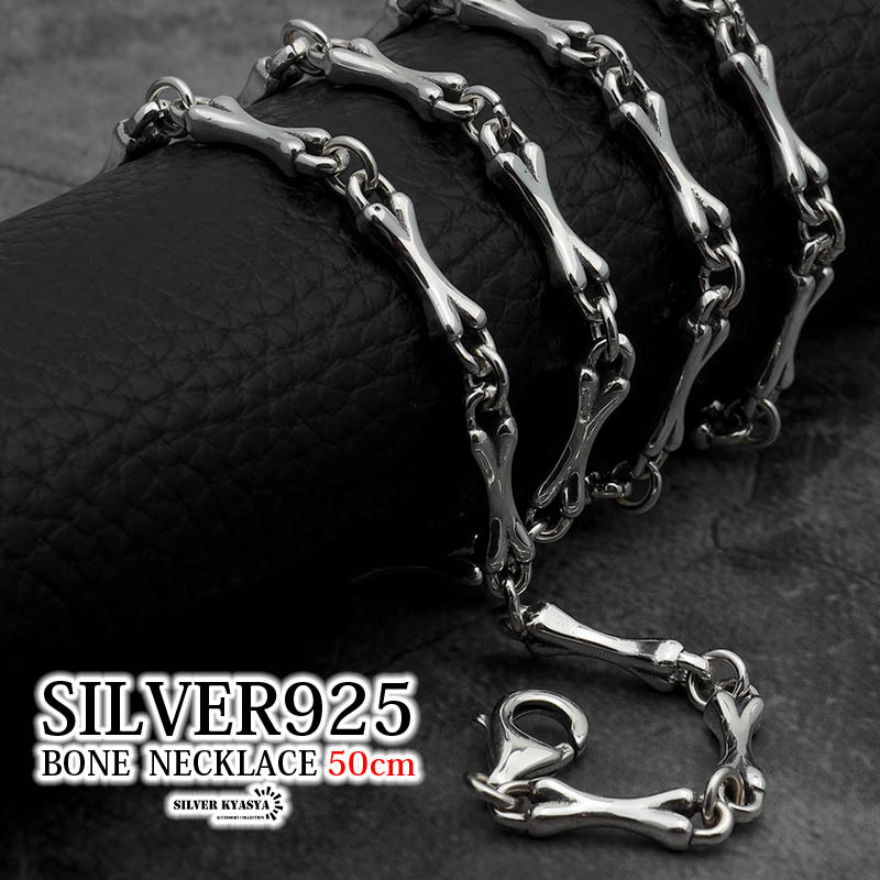 - 50cm ネックレス メンズ シルバー925 刻印 ボーン 骨 細い 細身 ゴシック 金属アレルギー