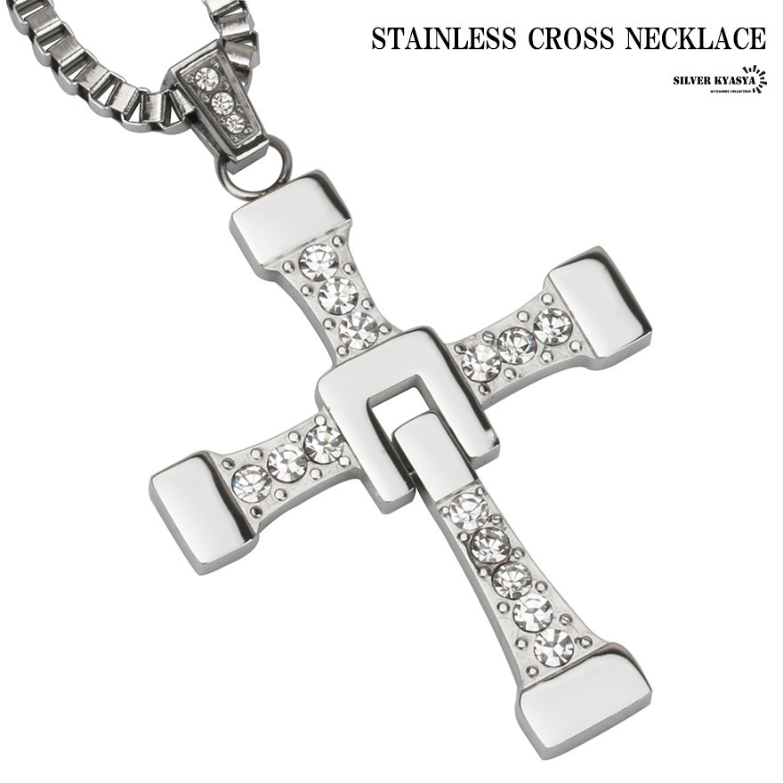 > ステンレス クロスネックレス 中折 シルバー 銀色 ネックレス メンズ 定番 ネックレス ペンダント ベネチアンチェーン 60cm