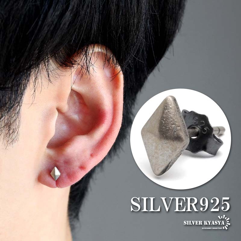 - シルバー925 ダイヤピアス トランプピアス マーク ひし形 スタッドピアス 小ぶり 片耳 シルバーピアス 金属アレルギー対応