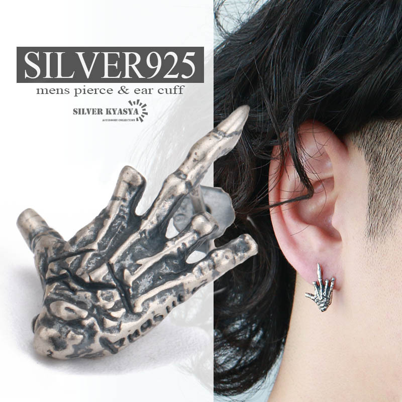 - デーモンハンドピアス シルバー925 悪魔の手 デビル モンスター スカル スタッドピアス 片耳用 アレルギー対応 18G 刻印