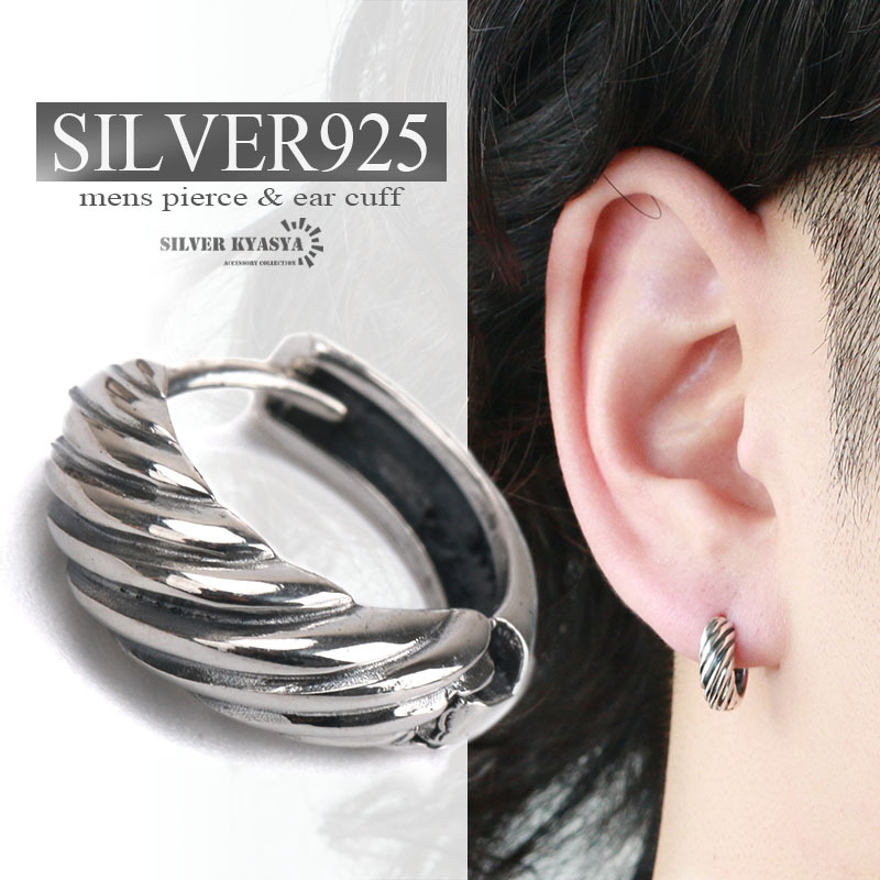 - シルバー925 フープピアス プレーン スパイラル 螺旋 渦巻 片耳用 アレルギー対応 18G 刻印