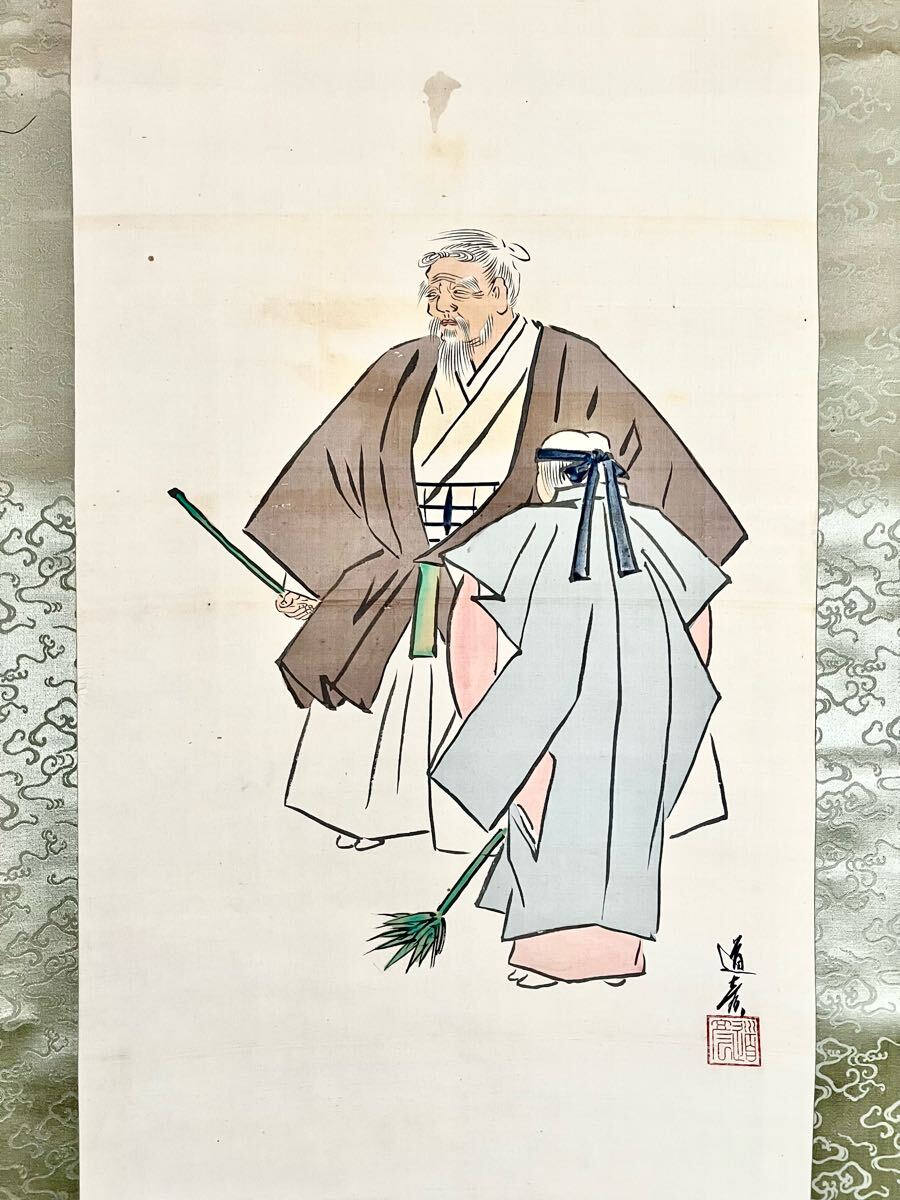 > 【真作】【S8】津端道彦「高砂之図」絹本 肉筆 人物画 縁起 長寿祈願 絵画 掛軸 明治-昭和時代の日本画家 新潟の人 師: 福島柳圃 山名貫義