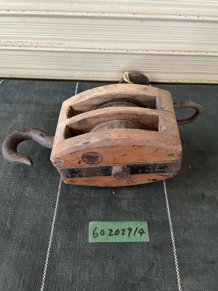 - ★滑車 古道具 紐 ワイヤー クレーン パーツ 中古★tano