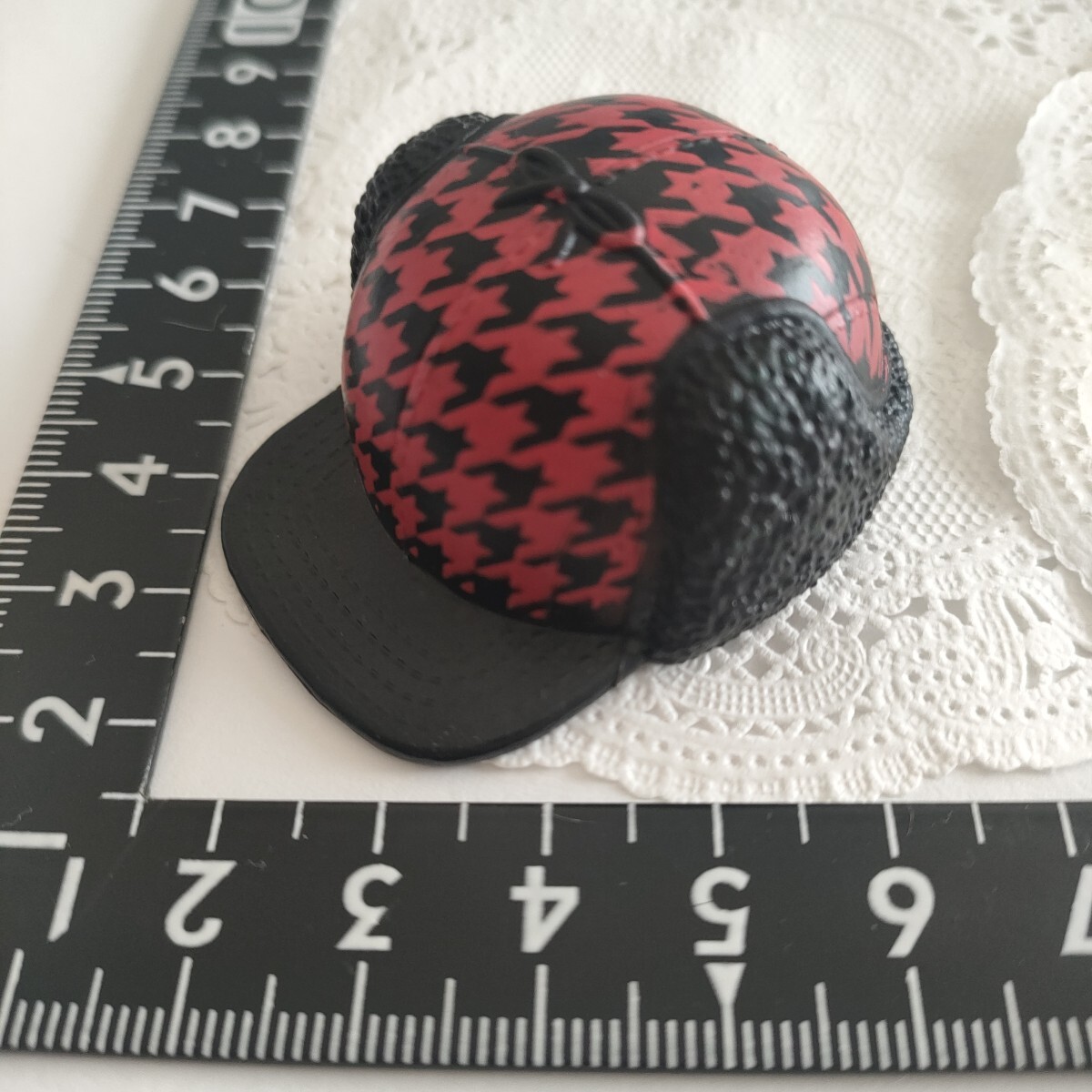 - 5r0131 ドール用 キャップ フライトキャップ 帽子 ボア付き 赤 千鳥柄 momoko バービー オビツ27ヘッド サイズ 1/6ドール