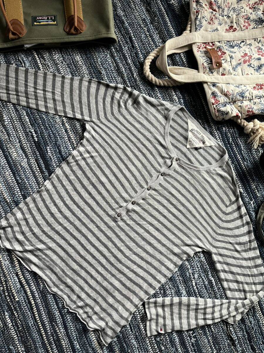 > 超美品 定価9,800円 TOMMY HILFIGER トミーヒルフィガー 高品質ガーゼ素材 透かしニット ヘンリーネック 長袖シャツ sizeL 正規販売