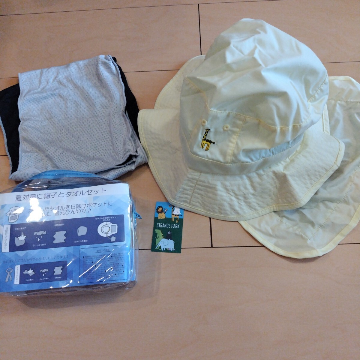 - 帽子 バケットハット クール UVカット ハット ひんやりタオル付き 黄色 イエロー レディース 日除けポケット付き キリン