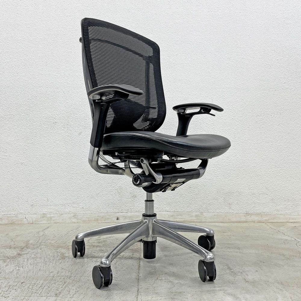 - 〓 オカムラ okamura コンテッサ Contessa デスクチェア スタンダード ランバーサポート付 CM32AB 可動アーム 座面レザー×背メッシュ