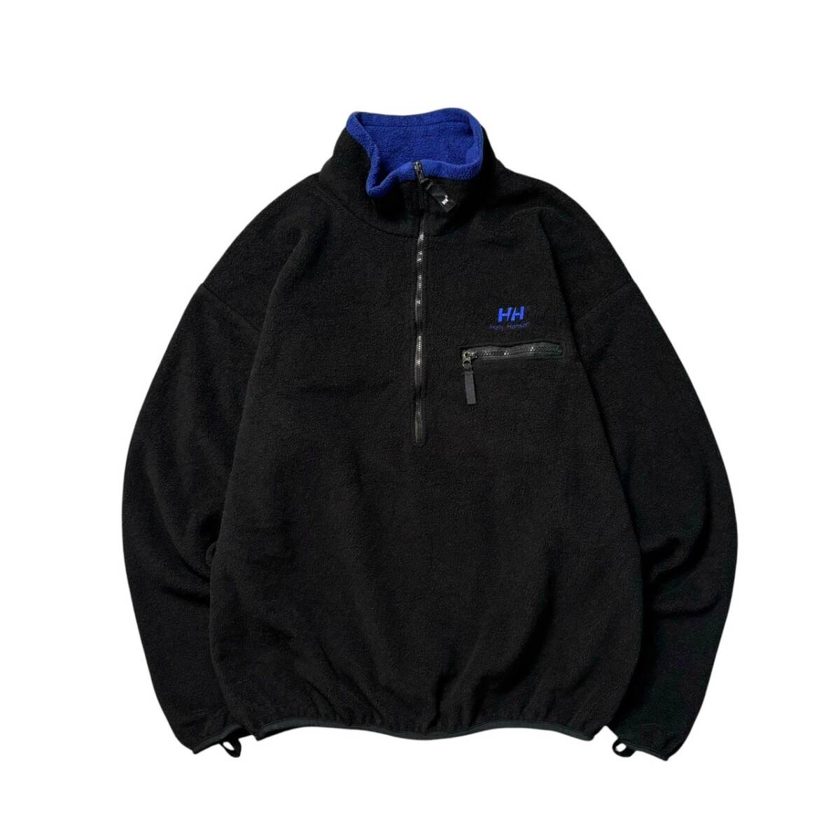 - Mサイズ 90s USA製 Helly Hansen ヘリーハンセン ハーフジップ フリース ブルゾン プルオーバー 刺繍 ワンポイント 黒青 ブラック