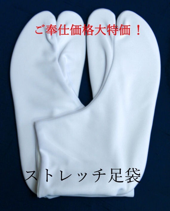 ※ ゆうパケットなら3個まで。ストレッチ足袋 S 5枚こはぜ ナイロン生地使用 【メール便OK】■サイズ 【Sサイズ】 21.5~22.0cm■素材 表地 : ナイロン 100% 甲裏地: 綿 100% 底地 :ポリエステル 100%■カラー 白ナイロン生地を使用したストレッチ足袋です。ナイロン生地を使用し、弾力性・伸縮性抜群に優れ、足にピッタリととても履きやすい足袋で、型崩れせず、綺麗な足元を演出します。又、ご家庭でお洗濯が出来、乾きも早くアイロン不要です。お仕事や日本舞踊・華道・普段着物等々、毎日使用される方や使用頻度の高いお客様へのご奉仕価格にて販売させて頂きます。ナイロン足袋は、洗濯が簡単で、洗った時に乾きが早く、アイロンも不要ですので、旅行用に大変便利です。【はき方のコツ】足にぴったり合ったものを、指先からきっちりと足を包むようにはきます。1:まず、足袋を半分ほど折り返します。2:足袋を引っ張り、足指を先端まで入れます。3:足首部分を引き上げ、足をしっかり収めます。4:つま先を少し上げ、底面と脚が90度くらいになるよう足首を曲げ、こはぜを下から上へ掛けます。これで、簡単に美しくはけます。【足袋の洗濯方法】洗濯は、汚れの軽いうちに洗剤をとかしたぬるま湯にしばらく浸し、軽く揉みほぐすと簡単にとれます。特に汚れが目立つ部分は、ブラシで軽く洗い、すすぎを十分にして下さい。※洗剤が残っていますと黄ばむので、すすぎはしっかりして下さい。すすぎ終わったら軽く絞り、下記の[足袋の伸ばし方]を参考の上、形を整え底地をよく伸ばし、手で叩いてシワを伸ばし、掛け糸(掛け糸とはこはぜを掛ける為に縫い付けてある糸です)のところに洗濯バサミを止め、陰干しします。[足袋の伸ばし方]・底地を左右に引き伸ばす。・指先・踝を持ち、底地を上下に引き伸ばす。・指先から甲の部分、縫い目を揃え引き伸ばす。・足首廻りを引き伸ばす。・手で叩き底地・表地のシワを伸ばす。《注意》他の色物との洗濯は避けてください。洗濯機を使用する場合は、弱回転で約5分間洗って下さい。(洗濯ネットのご使用をお奨めします。)塩素系漂白剤をご使用になる場合は、取扱い上の注意をよく読んで過度の使用は避けて下さい。(特に使用後のすすぎは充分にして下さい。)