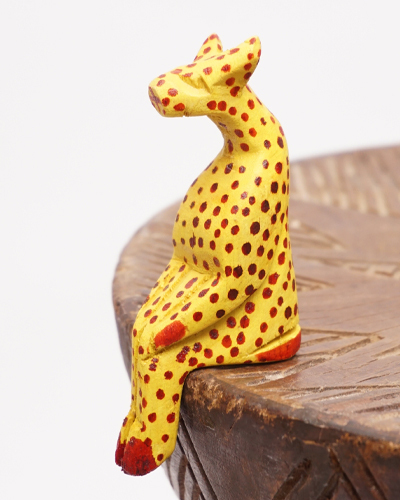 - アフリカ ケニア お座り アニマル カラー Sサイズ ヒョウ 豹 チーター 木彫り 置き物
