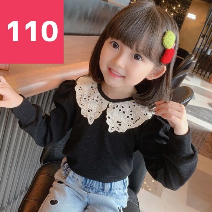 - レディース 襟付き レース 長袖Tシャツ 110 可愛い キッズ 子供 ブラック