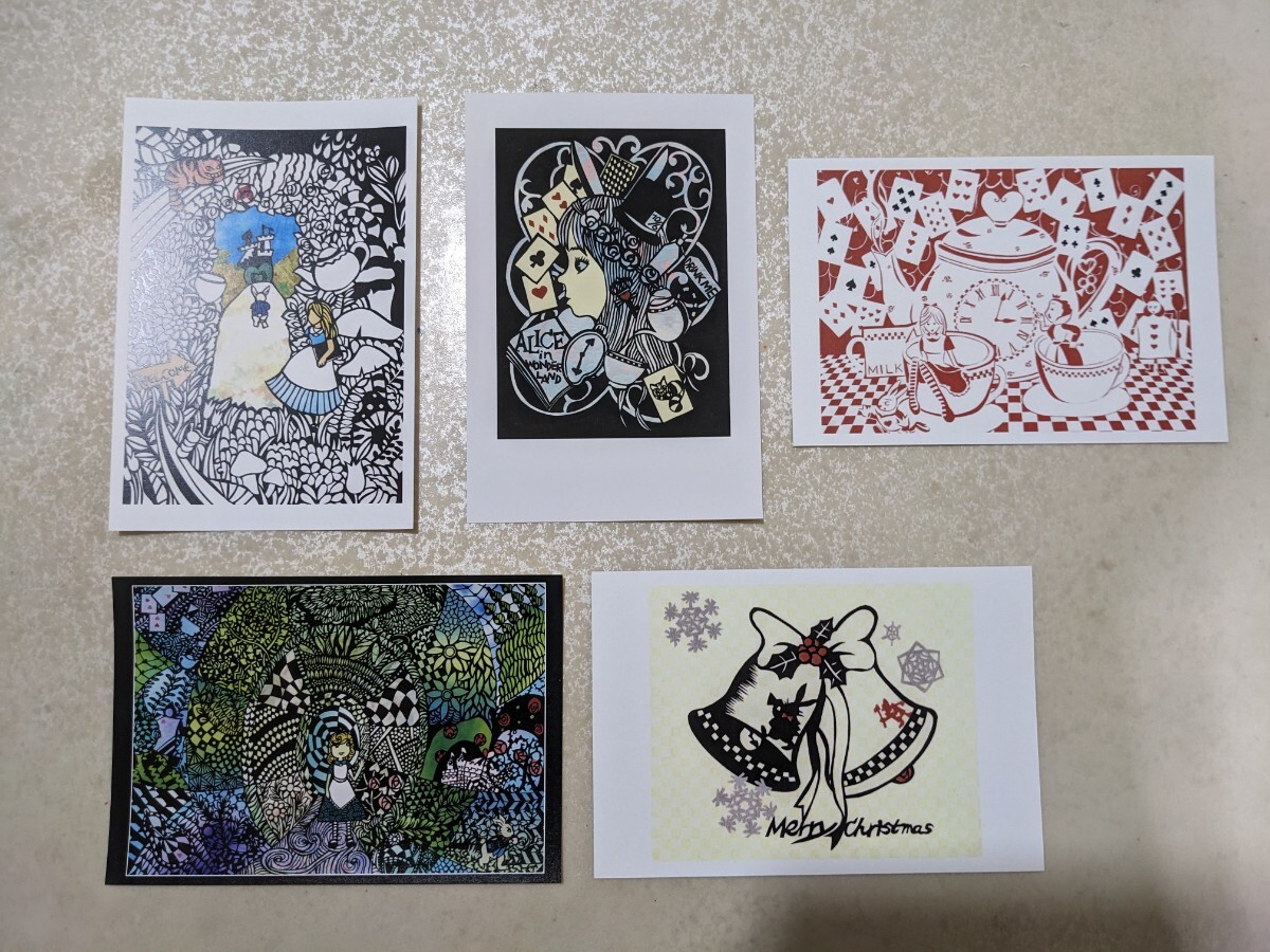 - 切り絵「不思議の国のアリス」オリジナルポストカード 5枚