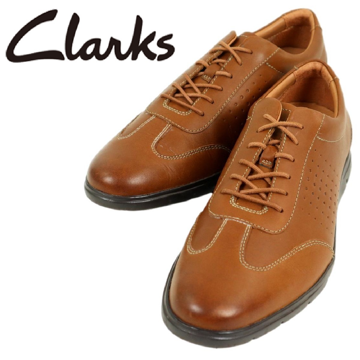 - 【T246】【極美品】Clarks クラークス レザーシューズ レザースニーカー オールレザー サイズ27㎝