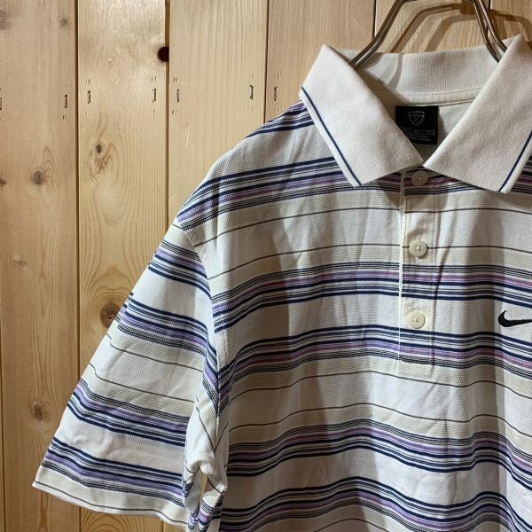 > [KWT3576] NIKE GOLF ナイキ ポロシャツ メンズ ホワイト パープルボーダー M ポス