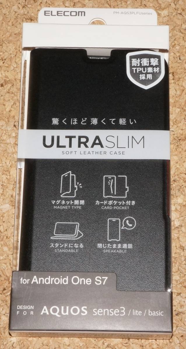 > ★新品★ELECOM AQUOS sense3/lite/basic/Android One S7 レザーケース Ultra Slim ブラック