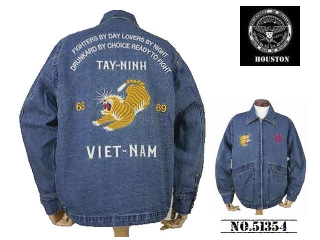 > 【送料無料 24%OFF】HOUSTON ヒューストン スラブデニム ベトジャン VIETNAM JUMPER 「TIGER」 NO.51354 VINTAGE WASH_Lサイズ