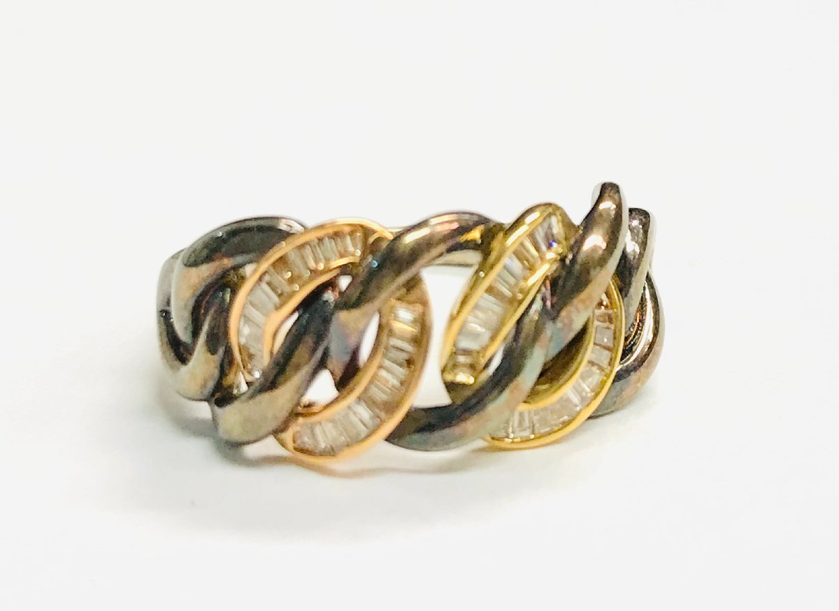 - qoj.YU204 K18/Silver925 ゴールド/シルバー チェーンデザイン ダイヤモンドリング 中石0.16ct 15号