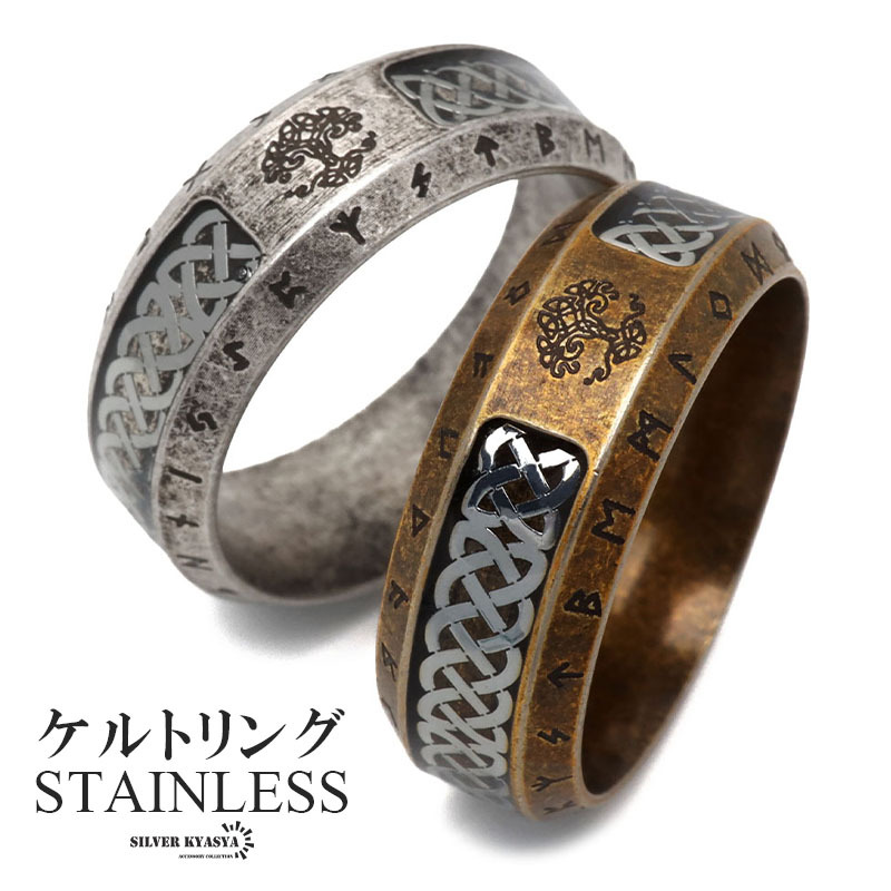 - (アンティークシルバー、13号) ステンレス ケルトリング アンティークリング つや消し 指輪 メンズ 男性 金アレ対応
