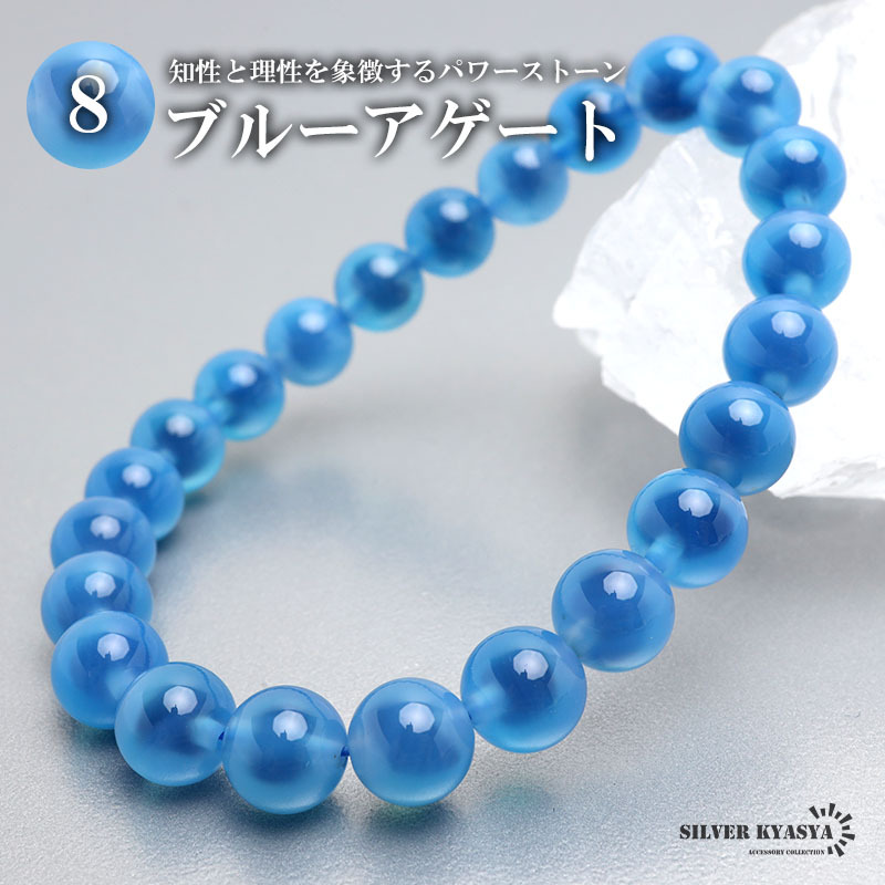 - (Mサイズ) パワーストーンブレスレット 数珠ブレスレット ブルーアゲート 8.5mm 天然石ブレスレット 中国産貴州産