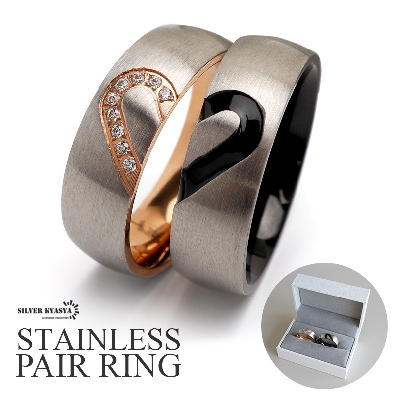 > (22号、17号) 心も一つに ペアリング ステンレス BOX付き ハート ピンク ブラック シルバー マリッジリング 2個セット