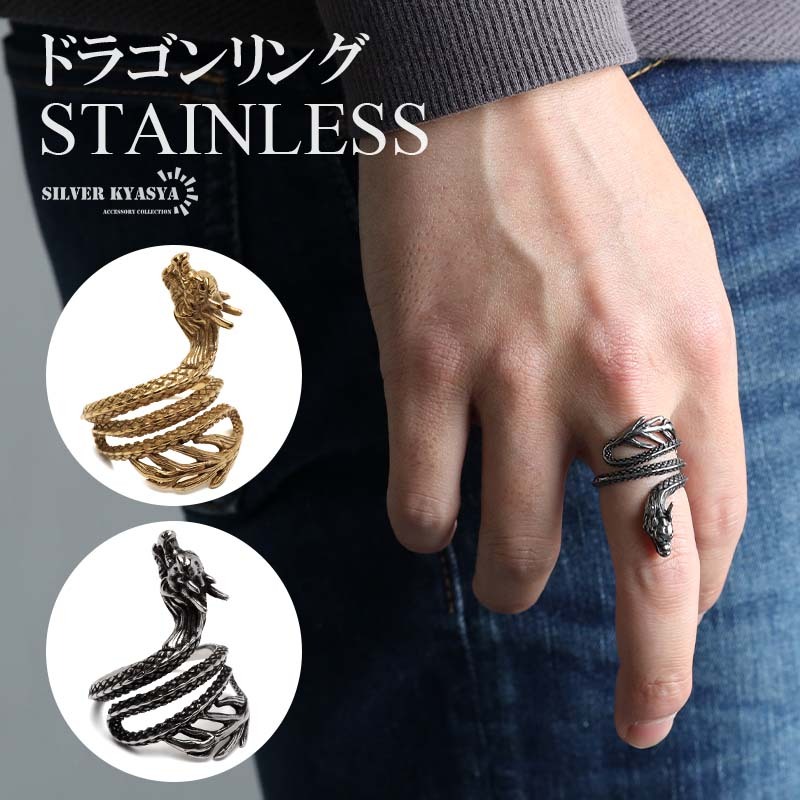 - (シルバー、29号) ステンレス ドラゴンリング 龍 ワイドリング ブラック 燻し 指輪 メンズ 男性 金アレ対応