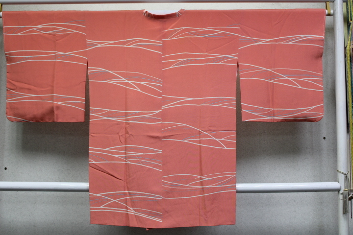 - きもの今昔8165 道行コートコレクション 正絹一越ちりめん地 手描横ライン柄 シツケ糸付未使用品 コート丈88cm