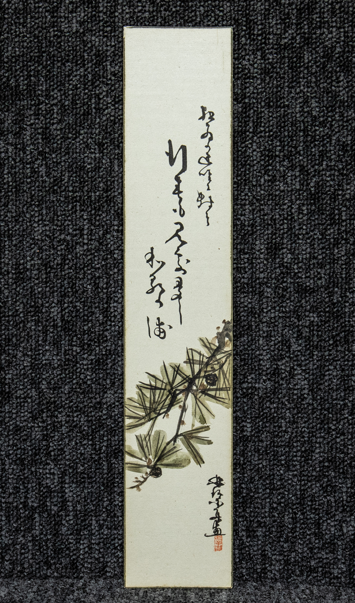- 短冊ー1928 富永杜発 松 尾張の俳人 号は杜発 林鐘園 梅裡・士前に学ぶ【真作】