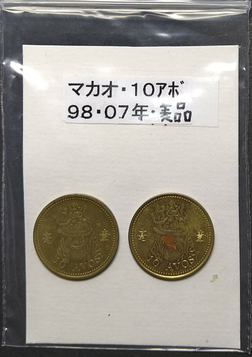 - マカオ・10アボ硬貨・1998年・2007年(2枚)【中古】