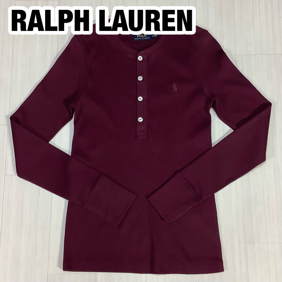 > POLO RALPH LAUREN ポロ ラルフローレン ヘンディーネック リブニット カットソー ワイン S 刺繍ポニー