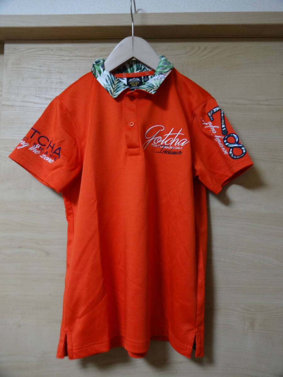 - GATCHA GOLF 半袖ポロシャツ サイズS R8233 オレンジ 襟ボタニカル柄