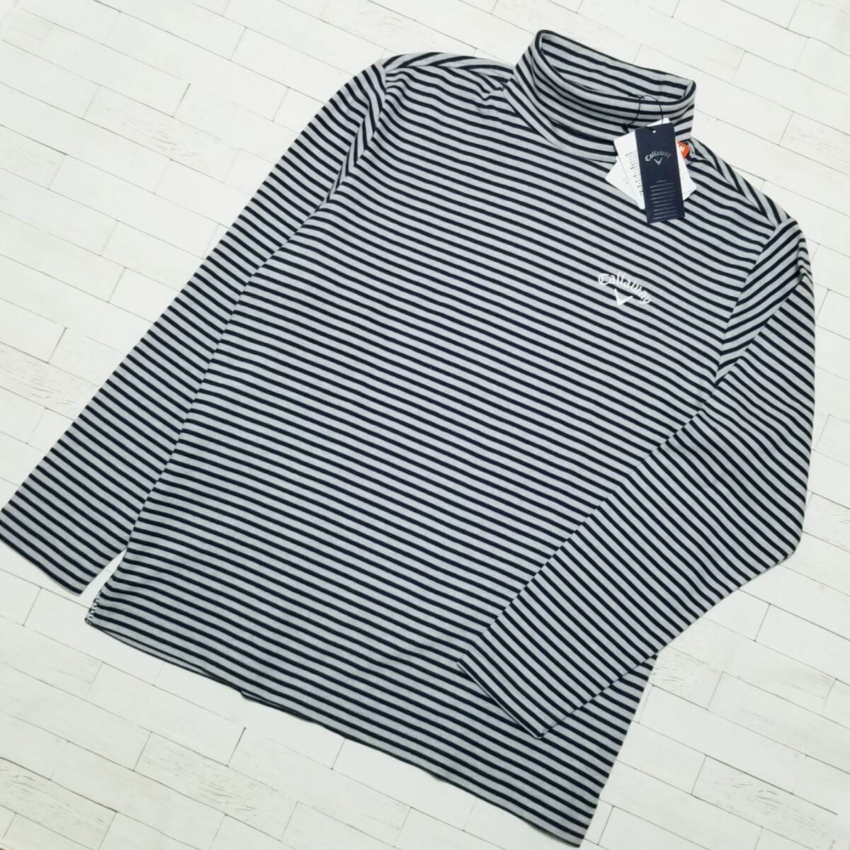 - 【未使用/BIGサイズ】◎ Callaway キャロウェイ/ 長袖 ワンポイント刺繍ロゴ ボーダー タートルネックネックセーター SIZE: 3L グレー