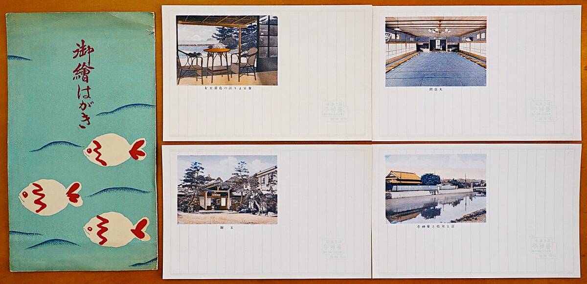 - 相州逗子海岸 御料理御旅館 養神亭 絵葉書4枚 紙ケース付き 検:神奈川県逗子市新宿 富士見橋 丸富次郎 若槻内閣 徳冨蘆花 不如帰の執筆宿