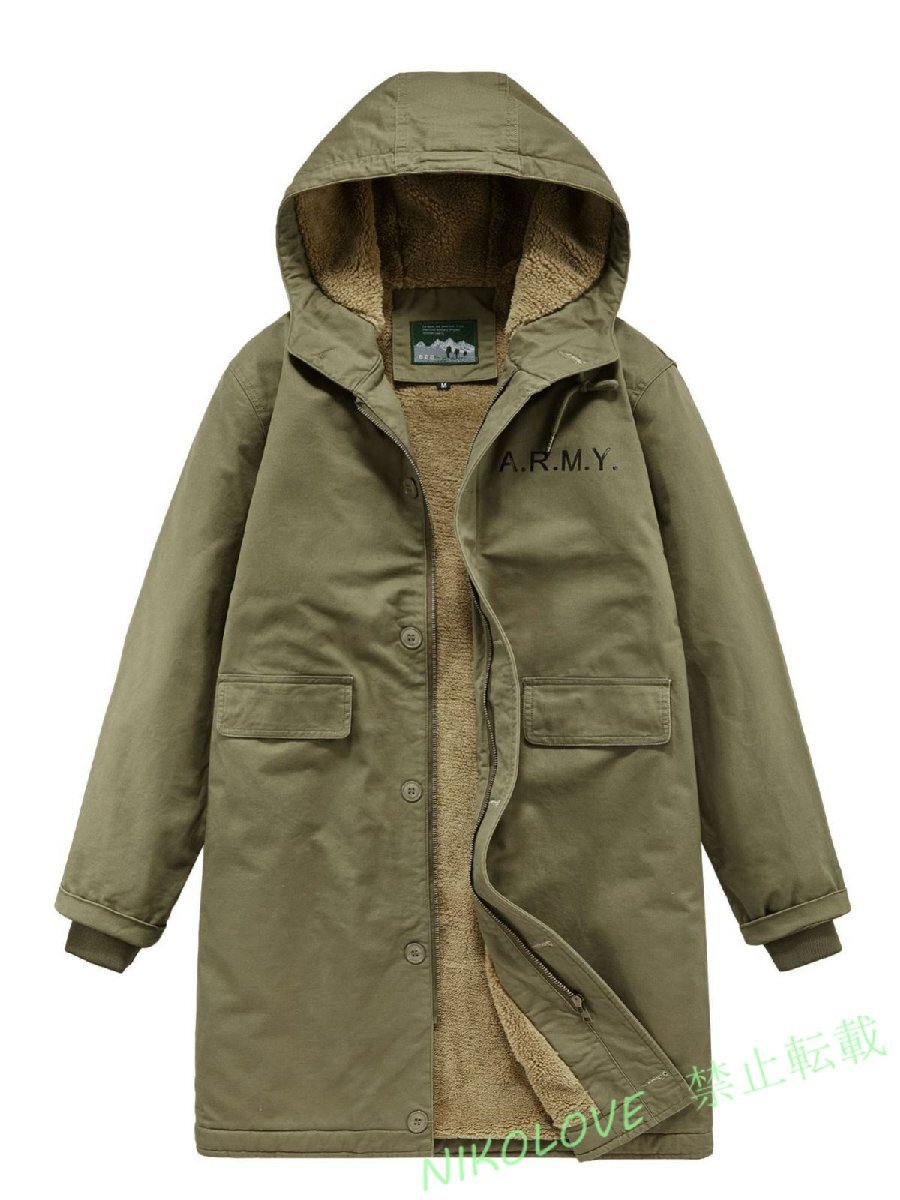 - ☆新品冬 ロングコート メンズ 裏ボア モッズコート フード付き 裏フリース ミリタリージャケット ヴィンテージ オリーブ XL~6XL LK198