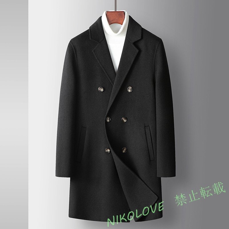 > ☆新品ウールコート メンズ ダブルボタン セレブ WOOL ロングコート ビジネスコート 紳士スーツ チェスターコート ブラック M LK460