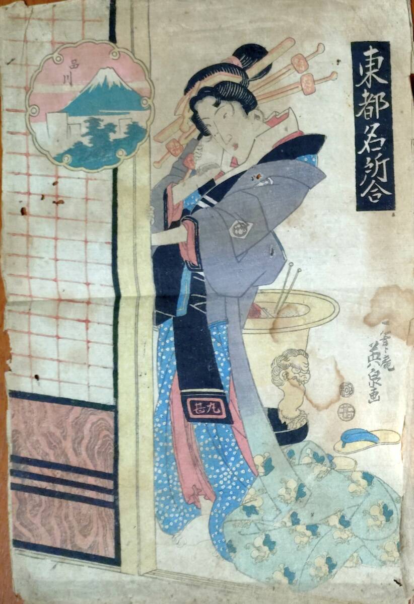 - f25020735〇一枚摺物 彩色木版画 浮世絵 昭和初期〇和本古書古文書