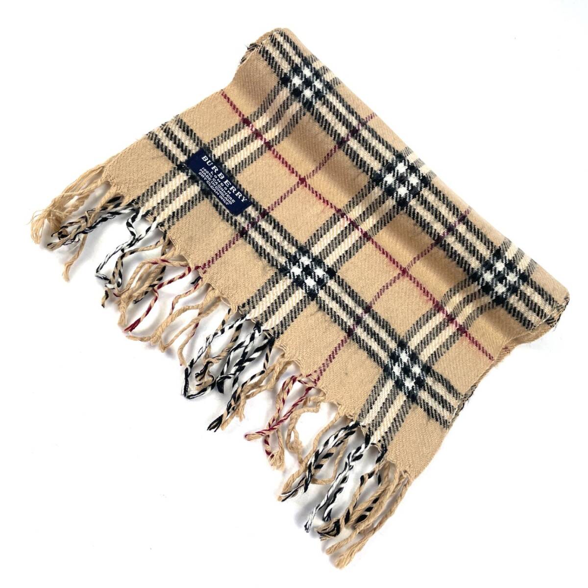 > t1616 バーバリーロンドン マフラーカシミア100% ベージュ ノバチェック イングランド製 レディース メンズ 男女兼用