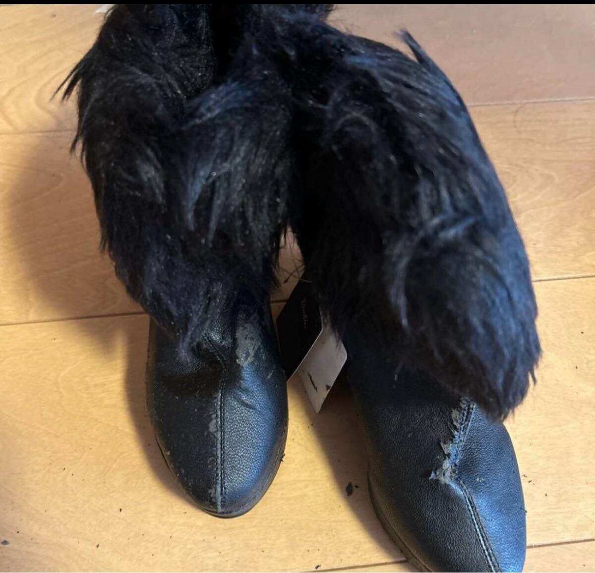 > 新品タグ付Barbieバービー黒ファーブーツ20cm 1万5750ブーティジャンク ショートブーツ ブラック