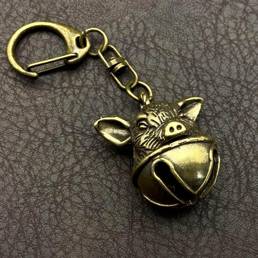 > 真鍮 キーホルダー キーリング ヴィンテージ ビンテージ 金色 アンティーク レトロ 真鍮製 ペンダントトップ 置物 チャーム 豚 鈴 ベル 196