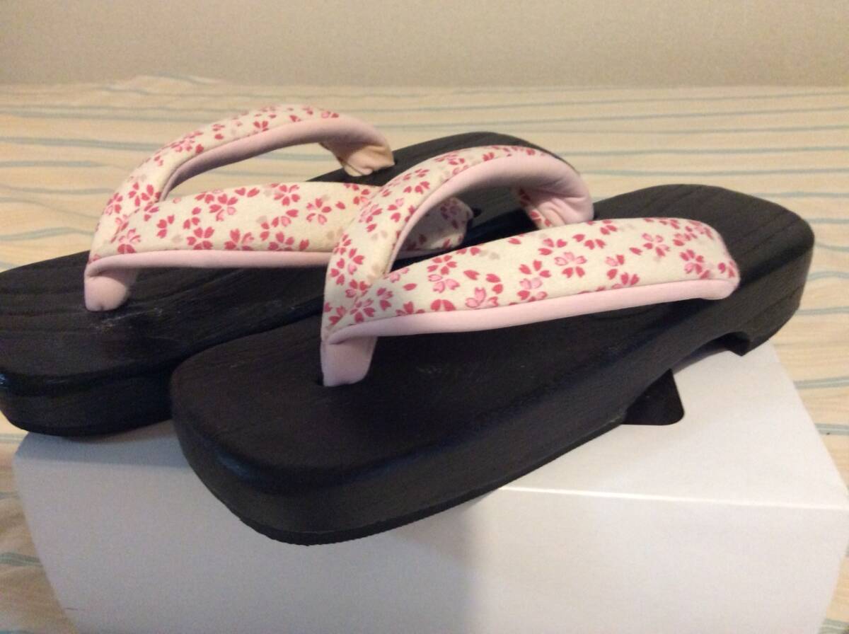 - ★夏デート&夏祭りイベント【桜柄さくらかわいい下駄】24センチ★ピンク小花柄★