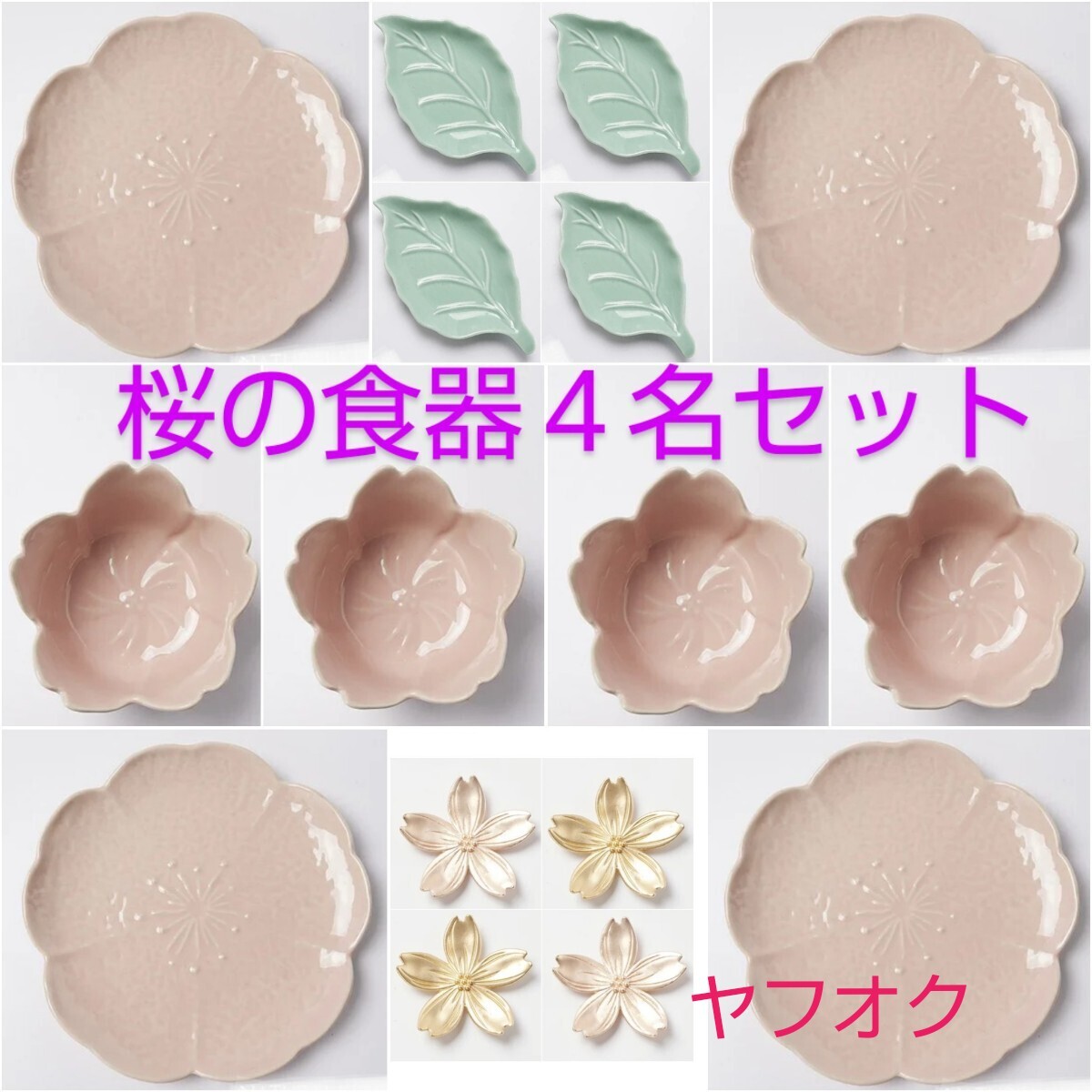 - 桜 さくら サクラ 葉っぱ 食器 4セット プレート お皿 皿 平皿 小鉢 小皿 箸置き 雛祭り ひな祭り ひなまつり お正月 お祝い事 パーティー