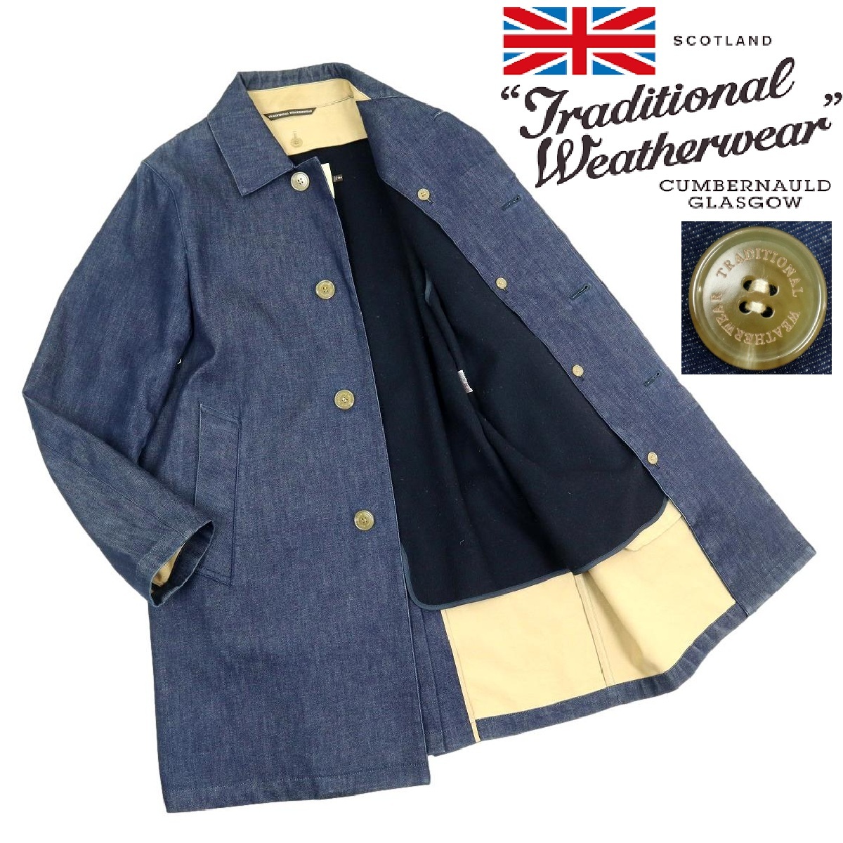> 【B3292】【ライナー付】Traditional Weatherwear トラディショナル ウェザーウェア ステンカラーコート デニムコート サイズ36