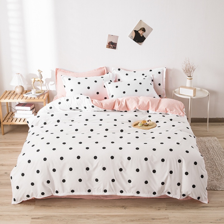 - 送料無料★新品 新生活応援 シングル 布団カバー 3点セット シーツ 枕カバー ピローケース 可愛い 新生活★白×ドットB