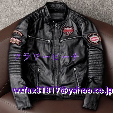 > 最高級 レザージャケット 機関車 革ジャン 牛革 シングルライダース メンズファッション ハーレー 本革 バイクレザー アメカジ S~4XL