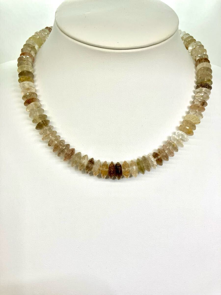 - 【新品】ルチルクォーツネックレス*水晶*パワーストーン*そろばん型*黄色*天然石*ブラックルチル*スモーキー*一点もの