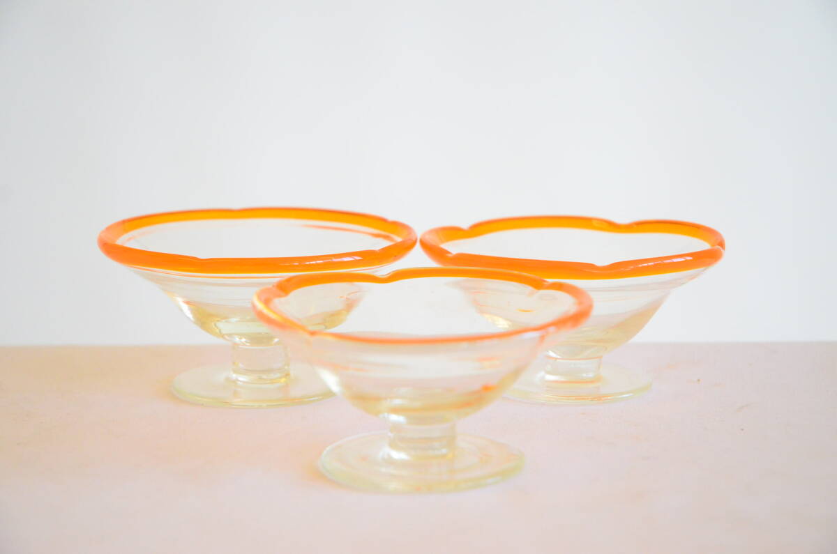 氷コップ 3個セット 縁オレンジ 昭和初期 当時物 ヴィンテージ 吹きガラス