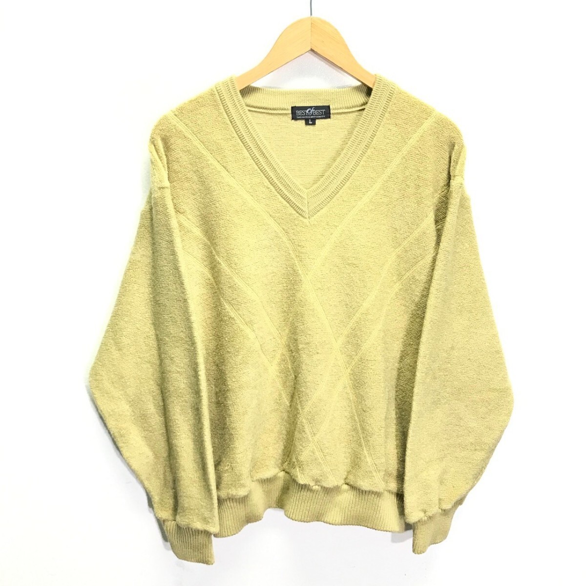 - 肌触り抜群◎軽い着心地◎【BEST OF BEST】Vネックセーター トップス パイル地 上品 大人カジュアル ミドルエイジ ベージュ L /Y25702ii