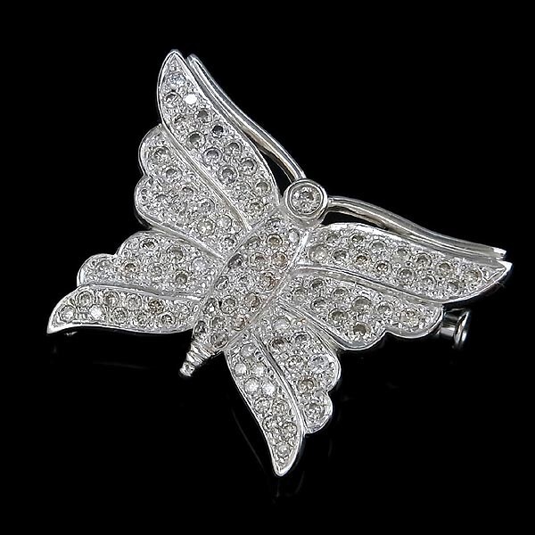 - 蝶モチーフ K18WG メレダイヤ入り蝶モチーフブローチ 兼用ペンダント D1.00ct 5.5g